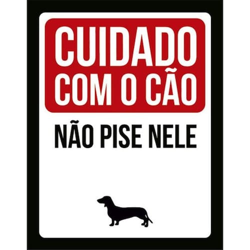 Kit 10 Placas Cuidado Cão Não Pise Nele Salsicha 36x46 Placas de sinalizaço fabricadas com poliestireno de alto impacto PSAI de 2mm e impressão ultravioleta.