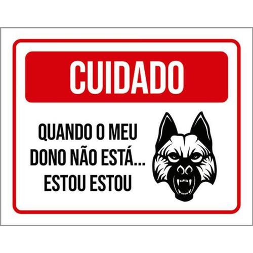Kit 10 Placas Cuidado Quando Meu Dono Não Está Estou 36x46 Placas de sinalizaço fabricadas com poliestireno de alto impacto PSAI de 2mm e impressão ultravioleta.