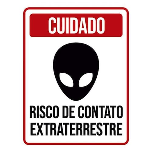 Kit 10 Placas Cuidado Risco Contato Extraterrestre 36x46 Placas de sinalizaço fabricadas com poliestireno de alto impacto PSAI de 2mm e impressão ultravioleta.