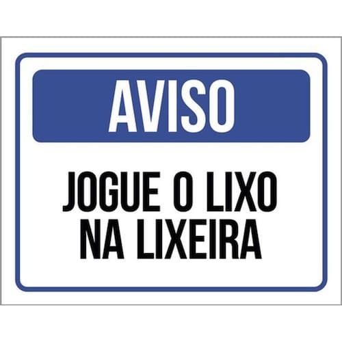 Kit 10 Placas De Aviso Jogue O Lixo Na Lixeira 36x46 Placas de sinalizaço fabricadas com poliestireno de alto impacto PSAI de 2mm e impressão ultravioleta.
