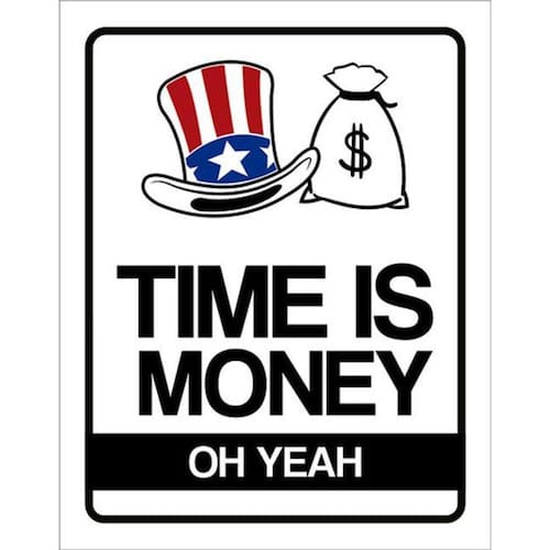 Kit 10 Placas Decorativa Time Is Money Oh Yeah 36x46 Placas de sinalizaço fabricadas com poliestireno de alto impacto PSAI de 2mm e impressão ultravioleta.