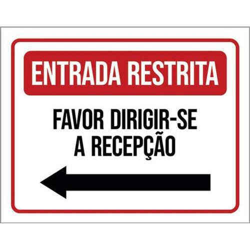 Kit 10 Placas Entrada Restrita Por Favor Recepção Seta Esq Placas de sinalizaço fabricadas com poliestireno de alto impacto PSAI de 2mm e impressão ultravioleta.