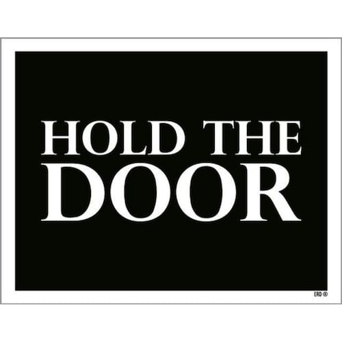 Kit 10 Placas Hold The Door 36x46 Placas de sinalizaço fabricadas com poliestireno de alto impacto PSAI de 2mm e impressão ultravioleta.