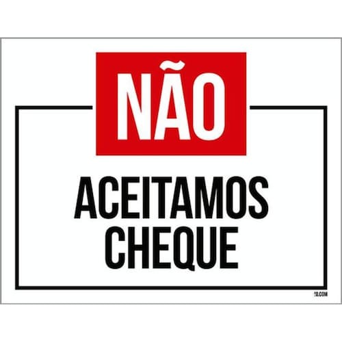 Kit 10 Placas Não Aceitamos Cheque 36x46 Placas de sinalizaço fabricadas com poliestireno de alto impacto PSAI de 2mm e impressão ultravioleta.