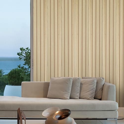 Inicie a aplicação pela área mais alinhada da parede, encaixando as ripas umas nas outras. O produto é projetado para ser instalado em superfícies lisas, niveladas e limpas, proporcionando uma aplicação descomplicada.