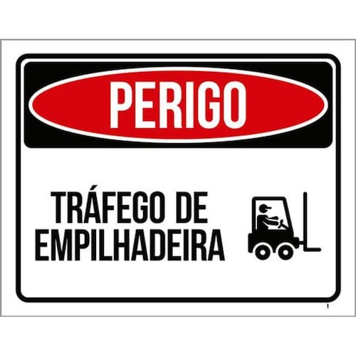 Kit 10 Placas Perigo Tráfego Empilhadeira 36x46 Placas de sinalizaço fabricadas com poliestireno de alto impacto PSAI de 2mm e impressão ultravioleta.