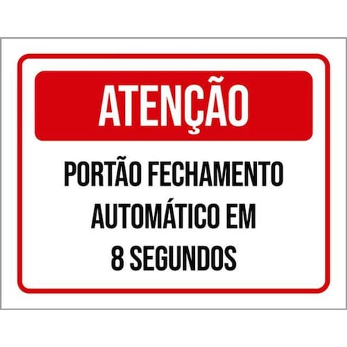 Kit 10 Placas Portão Fechamento 8 Segundos 36x46 Placas de sinalizaço fabricadas com poliestireno de alto impacto PSAI de 2mm e impressão ultravioleta.