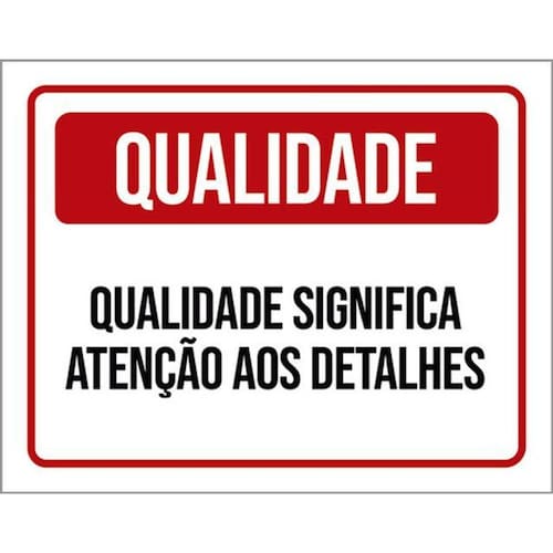 Kit 10 Placas Qualidade Significa Atenção Detalhes 36x46 Placas de sinalizaço fabricadas com poliestireno de alto impacto PSAI de 2mm e impressão ultravioleta.