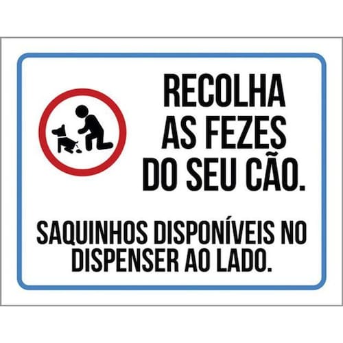 Kit 10 Placas Recolha Fezes Cão Saquinhos Disponíveis 36x46 Placas de sinalizaço fabricadas com poliestireno de alto impacto PSAI de 2mm e impressão ultravioleta.