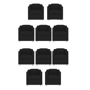 Kit 10 Poltronas Bia Decorativa Reforçada Recepção Clinica Salão Sala De Estar Suede - Preto