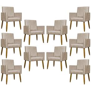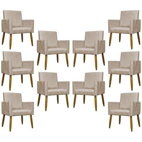 Kit 10 Poltronas Decorativas Para Sala Mari Suede Cores Pé Palito Castanho - Bege, Suede