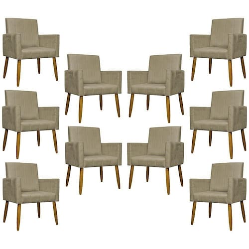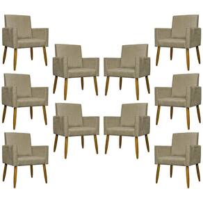 Kit 10 Poltronas Decorativas Para Sala Mari Suede Cores Pé Palito Castanho - Nude, Suede