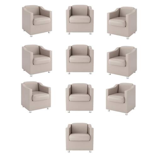 Kit 10 poltronas para salão de beleza - balaqui decor Cor: bege Essa poltrona vai levar conforto, requinte e qualidade renovando o ambiente com estilo. Uma excelente opção para sua recepção, sala de espera, sala de estar, quarto e escritório, trazendo mais qualidade e conforto ao seu ambiente. com um design seguro e confortável, a poltrona se adapta em vários ambientes que trará ao ambiente um toque especial. Para quem indicamos nossas poltronas - para os amantes da leitura; - para trazer conforto na hora da amamentação; - para trazer sofisticação para sala de estar; - para trazer aconchego em seu quarto; - para proporcionar comodidade ao seu escritório ou home office. E claro... Para presentear quem mais amamos Produto suporta até 120kg de fábrica de 03 meses contra defeito de fabricação. Instruções de montagem Produto é enviado montado, não necessitando de montagem. - pode haver alguma diferença de tonalidade entre a imagem e o produto, por conta do tratamento de imagens e a calibração de cores da sua tela. Modo de limpeza: - limpar com pano limpo e moderadamente úmido Especificações técnicas Travamento da estrutura com grampos em aço galvanizados e parafusos com flange de 5 mm; Acento sustentado por percintas elásticas; Madeira de reflorestamento eucalipto; Tecido material sintético. Dimensões Altura: 73 cm Largura: 65 cm Profundidade: 70 cm Peso: 15 kg