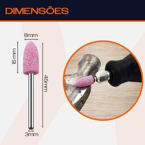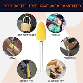 - Marca: Dremax - Gramatura: Grão 240 - 10 Pontas Grão 240 de Óxido de Alumínio Amarelo Corundum Premium - 10 Pontas Grão 120 de Óxido de Alumínio Rosa Corundum - As pontas montadas AMARELAS são indicadas para uso geral, com resultado mais fino que as tradicionais pontas rosas - 1 Ponta Montada 4mm Cilíndrica Amarela Grão 240 - 1 Ponta Montada 5mm Cilíndrica Amarela Grão 240 - 1 Ponta Montada 6mm Cilíndrica Amarela Grão 240 - 1 Ponta Montada 8mm Cilíndrica Amarela Grão 240 - 1 Ponta Montada 10mm Cilíndrica Amarela Grão 240 - 1 Ponta Montada 4mm Cônica Amarela Grão 240 - 1 Ponta Montada 5mm Cônica Amarela Grão 240 - 1 Ponta Montada 6mm Cônica Amarela Grão 240 - 1 Ponta Montada 8mm Cônica Amarela Grão 240 - 1 Ponta Montada 10mm Cônica Rosa Grão 120 - 1 Ponta Montada 4mm Cilíndrica Rosa Grão 120 - 1 Ponta Montada 5mm Cilíndrica Rosa Grão 120 - 1 Ponta Montada 6mm Cilíndrica Rosa Grão 120 - 1 Ponta Montada 8mm Cilíndrica Rosa Grão 120 - 1 Ponta Montada 10mm Cilíndrica Rosa Grão 120 - 1 Ponta Montada 4mm Cônica Rosa Grão 120 - 1 Ponta Montada 5mm Cônica Rosa Grão 120 - 1 Ponta Montada 6mm Cônica Rosa Grão 120 - 1 Ponta Montada 8mm Cônica Rosa Grão 120