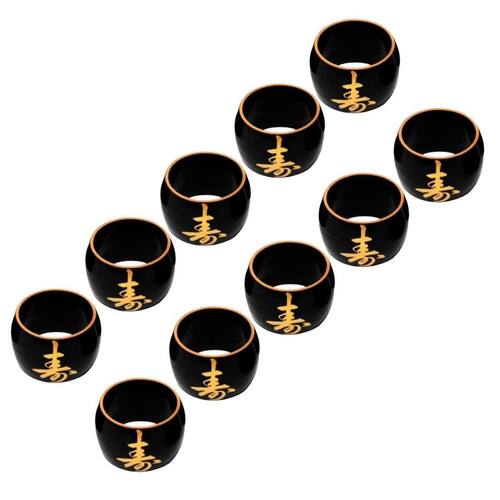 Kit C/10 Porta Guardanapo Preto com Ideograma Japonês Dourado