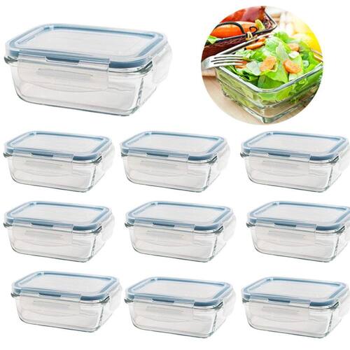 Kit 10 Potes de Vidro Hermético Retangular 640ml Nome do Produto: Kit 10 Potes de Vidro Hermético Retangular 640ml