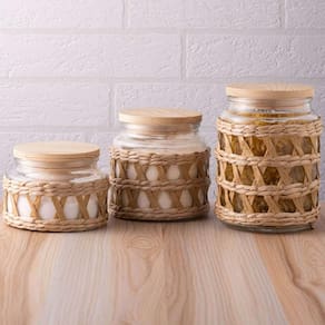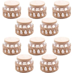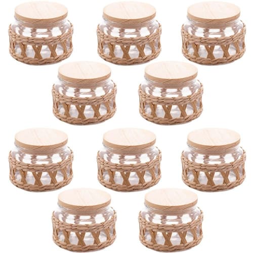 Kit 10 Potes Herméticos Vidro Sisal Tampa Madeira 350ml Wolff para Mantimentos Temperos.
