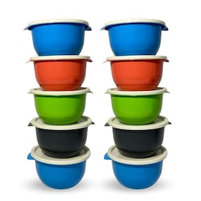 CONJUNTO COM 10 POTES PLÁSTICOS Redondos.Ideal para Armazenar Refeições, frutas, biscoitos, e qualquer outro tipo de alimento, pois mantém o sabor, aroma e qualidade por muito mais tempo. Mantêm sua cozinha e geladeira organizada e economiza espaço, pois os potes são empilháveis. .Cada jogo vem com 10 potes coloridos e cores vibrantes, todos de 1 litro.Características:Medidas: 18x8,5 cm Diâmetro de 15Quantidade: 10Cada jogo acompanha uma única cor.Utilizações: Freezer, micro-ondas, lava-louças, geladeira. Marca: Vpj
