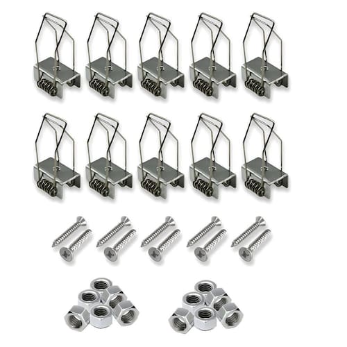 Kit 10 Presilhas Para Parafusar a Presilha no Perfil de Led e Embutir no gesso. Compatível com Perfil de até 25mm diferencial: Acompanha parafusos e porcas Especificações do Produto: Material: Metal Peso total do pct: 105gramas Indicação: Fixação de Perfil de Led no Gesso Modelo: Mola Dupla do vendedor: 30dias Marca: Não Informado Ean: 7899452038197