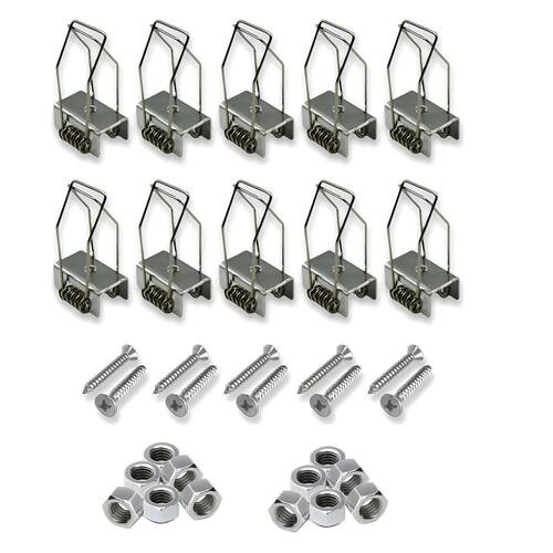 Kit 10 Presilhas Para Parafusar a Presilha no Perfil de Led e Embutir no gesso. Compatível com Perfil de até 25mm diferencial: Acompanha parafusos e porcas Especificações do Produto: Material: Metal Peso total do pct: 105gramas Indicação: Fixação de Perfil de Led no Gesso Modelo: Mola Dupla do vendedor: 30dias Marca: Não Informado