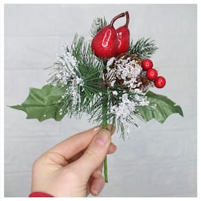 Kit 10 Ramos Pera Decoração Natal Artificial Com Detalhes Branco 17cm