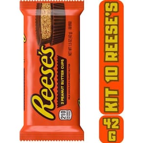 Kit com 10 pacotes de Reeses Butter Cups Peso Líquido por pacote: 42g Cada embalagem de Reese's contém 2 Cups Origem: Esdados Unidos