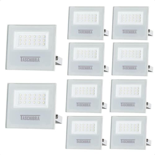 10 Refletores Taschibra Led Tr Slim 20w Luz Verde Branco Autovolt