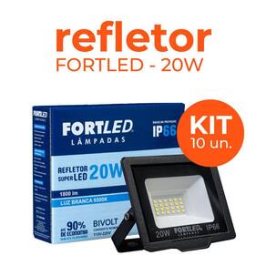 Acompanha: KIT 10 Refletores de LED 20W Fortled