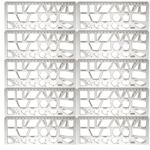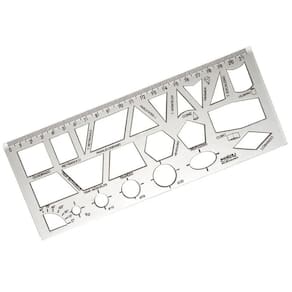 Kit 10 Réguas Formas Geométricas Cristal 21cm Waleu Detalhes: Ideal para utilizar em geometria, perfeita para traçar segmentos de reta e medir pequenas distâncias, também podendo ser incorporada no desenho técnico. Cor: cristal. Espessura: 0,4mm. Medidas: 0,2x9x22,5cm. Contém escala centímetro e milímetro. Fabricada em poliestireno PP.