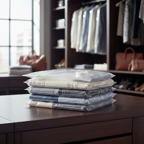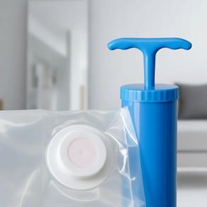 Possui sistema a vácuo que permite triplicar o espaço de armazenamento, além de ser reutilizável, impermeável e prático, protegendo suas peças da umidade, poeira, mofo, sujeira e insetos.