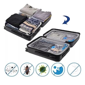 Sacos organizadores resistentes e duráveis, proporcionando a solução ideal para armazenar roupas, mantendo-as limpas, protegidas da umidade e do mofo. Acomodam grandes volumes de roupas, cobertores, travesseiros e outros itens que deseje guardar. Para remover o ar e comprimir os itens, pode-se utilizar uma bomba de sucção de ar ou um aspirador de pó. Assim, é possível ter mais espaço e organizar os pertences de maneira prática e eficiente.