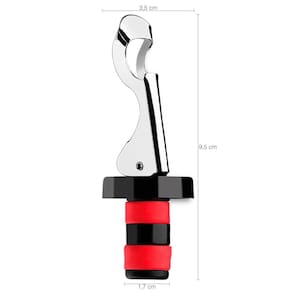 Garantia: 90 dias / Peso total: 0,250Kg / Cor predominante: preto / Ref: 7794463694670 Dimensões de cada: 3,5cm (C) x 1,7cm (L) x 9,5cm (A); Conteúdo: 10 tampas para garrafa de vinho; Material: aço inox; Cuidado: não lavar com materiais abrasivos; - Pode ser utilizado como abridor de garrafa; Instruções de uso: 1 - Com a alavanca na posição vertical , insira a tampa no bocal da garrafa; 2 - Para vedar a garrafa, baixe a alavanca; 3 - Para remover, levante a alavanca e retira a tampa.