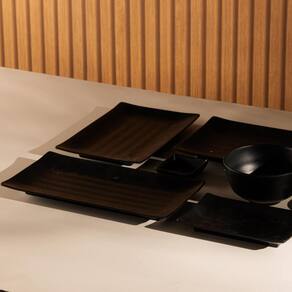Kit 10 Travessas de Melamina para Comida Japonesa Sushi Sashimi Pratos Retangulares Pretos Lyor.