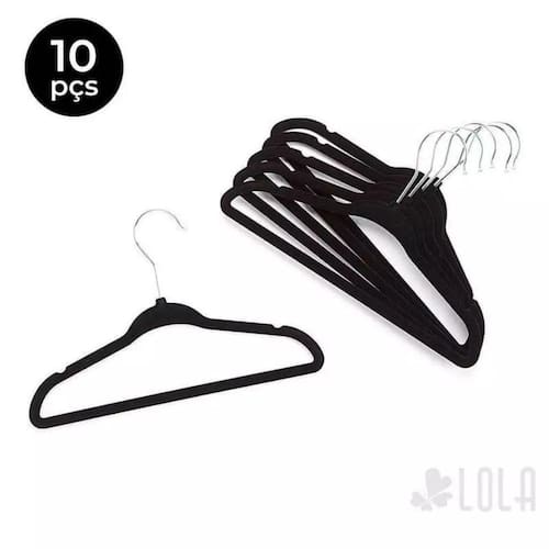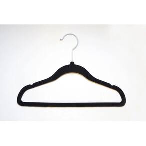 Kit 10 Unidades Cabide Infantil De Veludo 30cm Preto Kit 10 Unidades Cabide Infantil de Veludo 30cm Preto O Cabide De Veludo infantil Ultrafino Antideslizante Slim é feito de plástico revestido de veludo e gancho de metal, leve, porém muito resistente, ele é ideal para qualquer tipo de peça principalmente para roupas feito de tecidos finos e fáceis de desfiar, com um design simples e bem funcional. Cabides são a melhor maneira para organizar lojas, quartos ou closets, perfeito para quem gosta de qualidade e praticidade. - Feito especialmente para roupas mais delicadas.