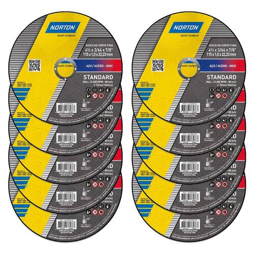 Kit 10 Unidades Disco De Corte Inox 4.1/2 Standard Norton