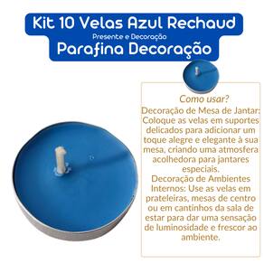 Kit com 10 Velas Azul Rechaud Parafina, perfeitas para adicionar um toque de tranquilidade e sofisticação à sua decoração. Feitas com parafina de alta qualidade, essas velas oferecem uma queima limpa e duradoura, criando um ambiente acolhedor e elegante. O tom azul vibrante traz uma sensação de serenidade e frescor, ideal para diversos estilos de decoração. Como você pode usar o Kit de Velas Rechaud Azuis: