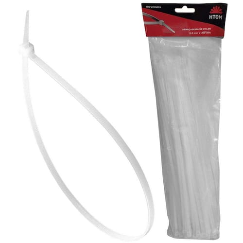 Kit 100 Abraçadeiras de Nylon Branca 6mm x 400mm Enforca Gato HTOM- Marca: HTOM- Referência: HTOM-42540- Comprimento: 400mm- Largura: 6mm- Qualidade profissional- Cor: Branca- Embalagem com 100 Unidades- Fabricada em nylon resistente.- Indicado para o uso doméstico, comercial e industrial.- Produto de alta qualidade e durabilidade, um material essencial que não pode faltar no seu local de trabalho- Utilizado para várias funções, prender cabos elétricos, embalagens, mangueiras, fios, componentes e diversos outros objetos às mais diversificadas superfícies- Ideal para a fixação diversa em cabos elétricos chicotes , veículos, bicicletas, motor, embalagens, etc- Produzidas em Nylon 6.6 que proporciona maior resistência a tração- Proteção UV que garante maior vida útil- Garantia: 90 dias