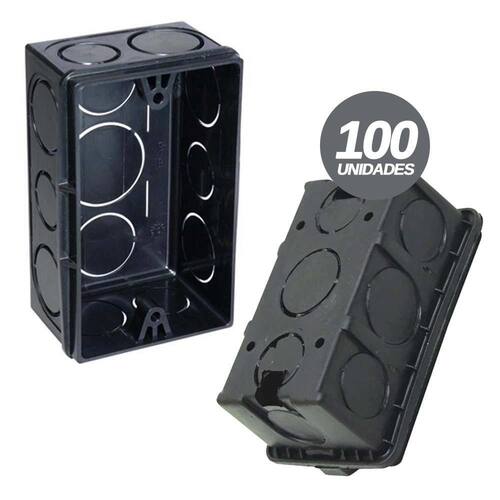 Kit 100 Unidades Caixa Plástica de Luz 4x2 Preta PVC para Interruptor ou Tomada
