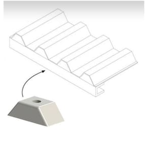 Os calços para instalação das telhas trapézio modelo T16/Greca são fabricados em polipropileno de alta durabilidade e resistência. A correta fixação das telhas com os calços é muito importante, pois ela evitará vazamentos, trincas e deslocamento das telhas.