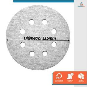 Características técnicas: Material: Resina, óxido de alumínio, papel e pluma Medidas: 115mm Quantidade de furos: 8 Limite máximo: 12.220rpm - 80m/s Grão: 1000 Quantidade: 100 unidades Marca: Starfer Ref.: 4000447 Marca: Não Informado