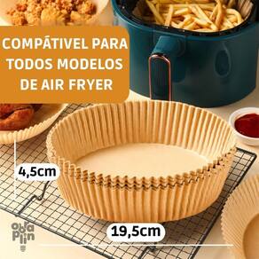 Cor: Marrom Tamanho: diâmetro 18cm, altura 4.5cm Material: Papel Biodegradável Quantidade: em Kit Marca: Forro De Papel Air Fryer Ean: 7403314115140