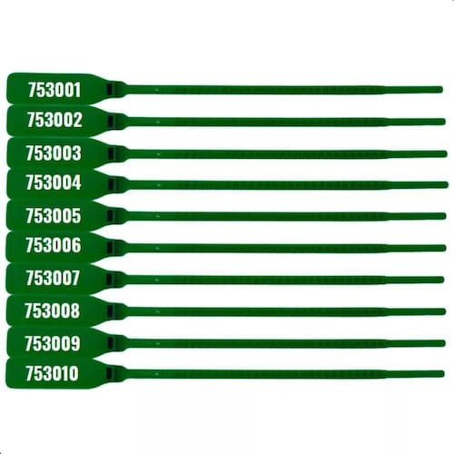 Kit 100 Lacres De Segurança Numerado para Malote Plástico 16cm Verde Kit 100 Lacres De Segurança Numerado para Malote Plástico 16cm Verde