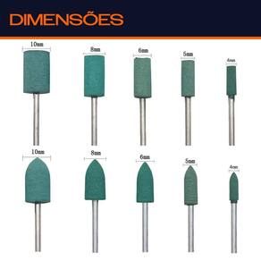 Kit com 100 Pontas Montadas 4 a 10mm Borracha Abrasivo Haste 3mm Polimento para Micro Retíficas Dremax - Marca: Dremax - Referência: KPM100-BR - Diâmetro da haste: 3mm - Gramatura: Grão 180 - 10 Pontas Montadas de Borracha Cilíndrica 4mm - 10 Pontas Montadas de Borracha Cilíndrica 5mm - 10 Pontas Montadas de Borracha Cilíndrica 6mm - 10 Pontas Montadas de Borracha Cilíndrica 8mm - 10 Pontas Montadas de Borracha Cilíndrica 10mm - 10 Pontas Montadas de Borracha Cônica 4mm - 10 Pontas Montadas de Borracha Cônica 5mm - 10 Pontas Montadas de Borracha Cônica 6mm - 10 Pontas Montadas de Borracha Cônica 8mm - 10 Pontas Montadas de Borracha Cônica 10mm - Material da ponta: Borracha - Material da haste: aço inox - Pontas montadas de borracha Flexível, para retificação e polimento precisos - Uso em micro retíficas e mini lixadeiras de qualquer marca com mandril de 3mm - Seu formato facilita o trabalho em locais de difícil acesso - Uso em micro retíficas de qualquer marca com pinça de 3mm - Indicado para desbaste e semi-acabamento - Remoção de ferrugem de metal enferrujado, tratamento em joias e pré-acabamento em pedras, ouro e prata - Amplamente utilizado em moagem, molde, equipamentos médicos, equipamentos de beleza, manicure, ouro e prata jóias, aço inoxidável, vidro equipamentos, peças de máquinas e outros processos - Muito menos agressivo que tubos de lixa e pontas montadas rosa - Muito utilizado na primeira etapa no processo de polimento - Dimensões da caixa: 11,5 x 11,5 x 6cm - Peso bruto: 470 gramas - Garantia: 90 dias contra defeitos de fabricação A DREMAX é a primeira e única marca brasileira dedicada exclusivamente às micro retíficas, acessórios e acoplamentos para esta indispensável ferramenta. Seja para trabalhos de precisão, artesanato, modelagem ou reparos, a DREMAX tem o produto certo para você. Marca: Dremax