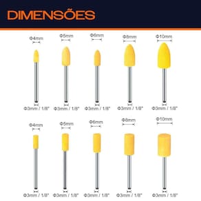 Kit com 100 Pontas Montadas Cilíndricas Rebolo Amarelo Grão 240 Haste 3mm para Micro Retíficas Dremax - Marca: Dremax - Referência: KPM100-AM - Gramatura: Grão 240 - Diâmetro da haste: 3mm - Material da ponta: Óxido de alumínio Amarelo Corundum Premium - As pontas montadas AMARELAS são indicadas para uso geral, com resultado mais fino que as tradicionais pontas rosas - 10 Pontas Montadas4mm Cilíndrica Amarela Grão 240 - 10 Pontas Montadas5mm Cilíndrica Amarela Grão 240 - 10 Pontas Montadas6mm Cilíndrica Amarela Grão 240 - 10 Pontas Montadas8mm Cilíndrica Amarela Grão 240 - 10 Pontas Montadas10mm Cilíndrica Amarela Grão 240 - 10 Pontas Montadas4mm Cônica Amarela Grão 240 - 10 Pontas Montadas5mm Cônica Amarela Grão 240 - 10 Pontas Montadas6mm Cônica Amarela Grão 240 - 10 Pontas Montadas8mm Cônica Amarela Grão 240 - 10 Pontas Montadas10mm Cônica Amarela Grão 240 - Indicada para limpezas e acabamentos em superfícies - Uso em micro retíficas de qualquer marca com mandril de 3mm - Indicada para afiação, esmerilhamento e desbaste em metais, joias, pedras preciosas, vidro, entre outros materiais - Seu formato facilita o trabalho em locais de difícil acesso - Dimensões da embalagem: 11,5 x 11x5 x 6cm - Peso bruto: 360 gramas - : 90 dias contra defeitos de fabricação A DREMAX é a primeira e única marca brasileira dedicada exclusivamente às micro retíficas, acessórios e acoplamentos para esta indispensável ferramenta. Seja para trabalhos de precisão, artesanato, modelagem ou reparos, a DREMAX tem o produto certo para você