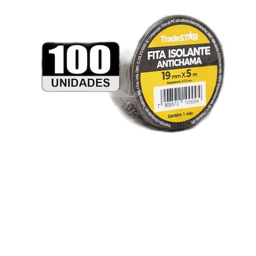 - largura: 19 mm - comprimento: 5 m - cor: preto - material: pvc - resistência à tração: 18 n/cm - resistência à temperatura: 80c - isolação elétrica: até 600v