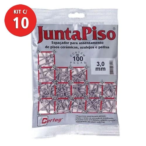** KIT EXCLUSIVO COM 1000 UNIDADES **Espaçador juntapiso 3mm CortagConteúdo: 10 Pacote com 100 unidades. Aplicação/ Características: Proporciona assentamento alinhado; Reduz o tempo de colocação do revestimento. Funciona como anti-dilatador, evitando o possível deslocamento das peças cerâmicas.Material/ Composição:Polipropileno.Vantagens:- Reduz o tempo de colocação do revestimento; - Funciona como anti-dilatador, evitando o possível deslocamento das peças cerâmicas.Cor: Cinza. Tamanho: 3 mm.Comprimento: 28 mm.Largura: 3 mm. Altura: 3 mm.Marca: CortagCódigo: KIT-51747-10