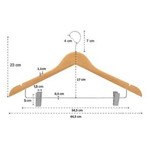 Cabide de Madeira com Gancho e Presilhas Cromadas - 100 unidades