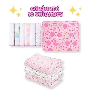 Kit enxoval bebê 10 peças 3 cueiro bebê flanelado + 6 pano de boca 3 estampados + 3 lisos + 1 toalha de banho com capuz e forro de fralda 70x80cm 100% algodão Especificações do kit / conjunto Total de produtos: 10 peças Contém 1 toalha de banho com capuz e forro de fralda 70x80cm Contém 3 cueiros flanelados 80x60cm estampado Contém 6 panos de boca bebê duplo estampado 30x30 cm 3 estampados + 3 liso Principais características: Composição: Kit completo 100% algodão e com toque flanelado Idade: a partir do primeiro dia de vida Estampas: feminino estampas Extra absorvente Tecido duplo ou seja, existe duas camadas para maior durabilidade Cuidados Leia atentamente a descrição Seguir as recomendações da etiqueta do produto para maior durabilidade do produto Lavar a mão ou lavar suavemente em 30 graus. Não alvejar Não centrifugar Secagem em varal, na horizontal e na sombra Passar em temperatura média de 150 Não limpar a seco Não remover manchas com solventes Dúvidas e informações Nos preocupamos muito com a satisfação dos nossos clientes, e estamos sempre a disposição para quaisquer dúvidas ou informações entrando em contato. Com muito carinho agradecemos a preferência, e desejamos que goste do pedido Obrigada Marca: Não Informado