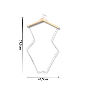 Um cabide de madeira com uma silhueta adulta é um suporte de roupa feito de madeira que possui uma forma adequada para pendurar roupas de tamanho adulto, como camisas, blusas, paletós e vestidos. Esses cabides geralmente têm ombreiras para manter as roupas no lugar, prevenindo vincos e mantendo a forma das peças. Eles são uma escolha elegante e durável para organizar e manter suas roupas em boas condições.