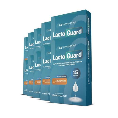 Através deste anúncio, você está adquirindo 10 dez potes de lacto guard lactase 15 cáps mastigáveis sabor baunilha hf suplementos